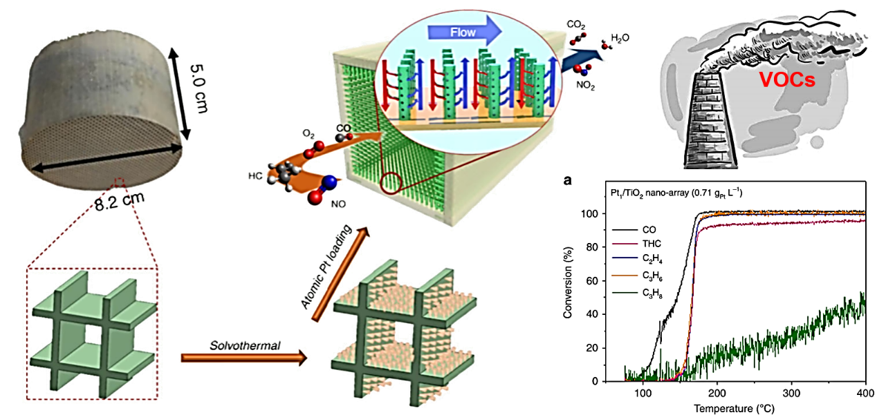 可挥发性有机物是重要的大气污染物,研究发现,催化氧化被认为是极具前景的一种VOCs净化技术。课题组致力于开发新型高效催化剂,主要集中在贵金属Pt基催化剂、过渡金属Cu基催化剂以及钙钛矿型催化剂。同时,课题组深入探究催化活性位点和催化机制,揭示催化剂的构效关系,为高效VOCs催化氧化设备的产业化开发提供明确的指导。