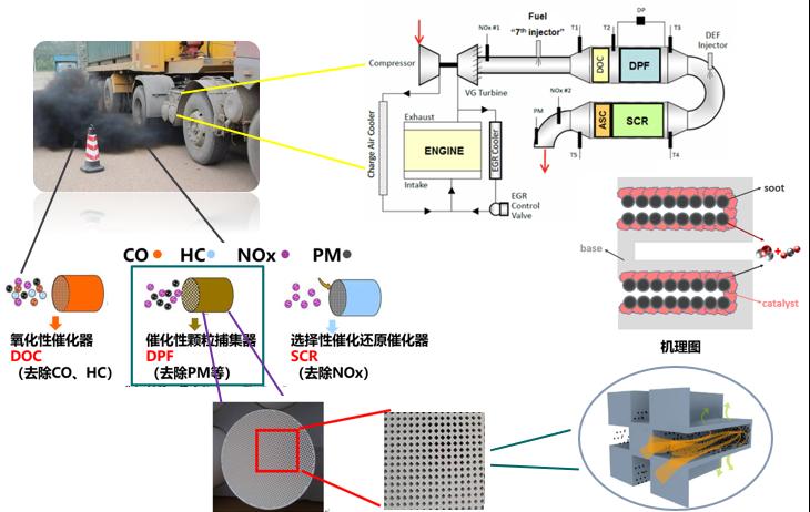 柴油尾气中颗粒物的排放, 给大气环境和人类健康带来的严重的危害。柴油颗粒物捕集器(DPF)能够有效捕获柴油尾气中的颗粒物(包括碳烟颗粒物、 灰分等)从而减少颗粒物的排放。课题组致力于在前人的研究基础上进一步研究形成新型高效CDPF,提高DPF再生性能,同时提高催化剂催化性能,实现DPF的循环使用,在对尾气治理和污染防治上具有重要意义